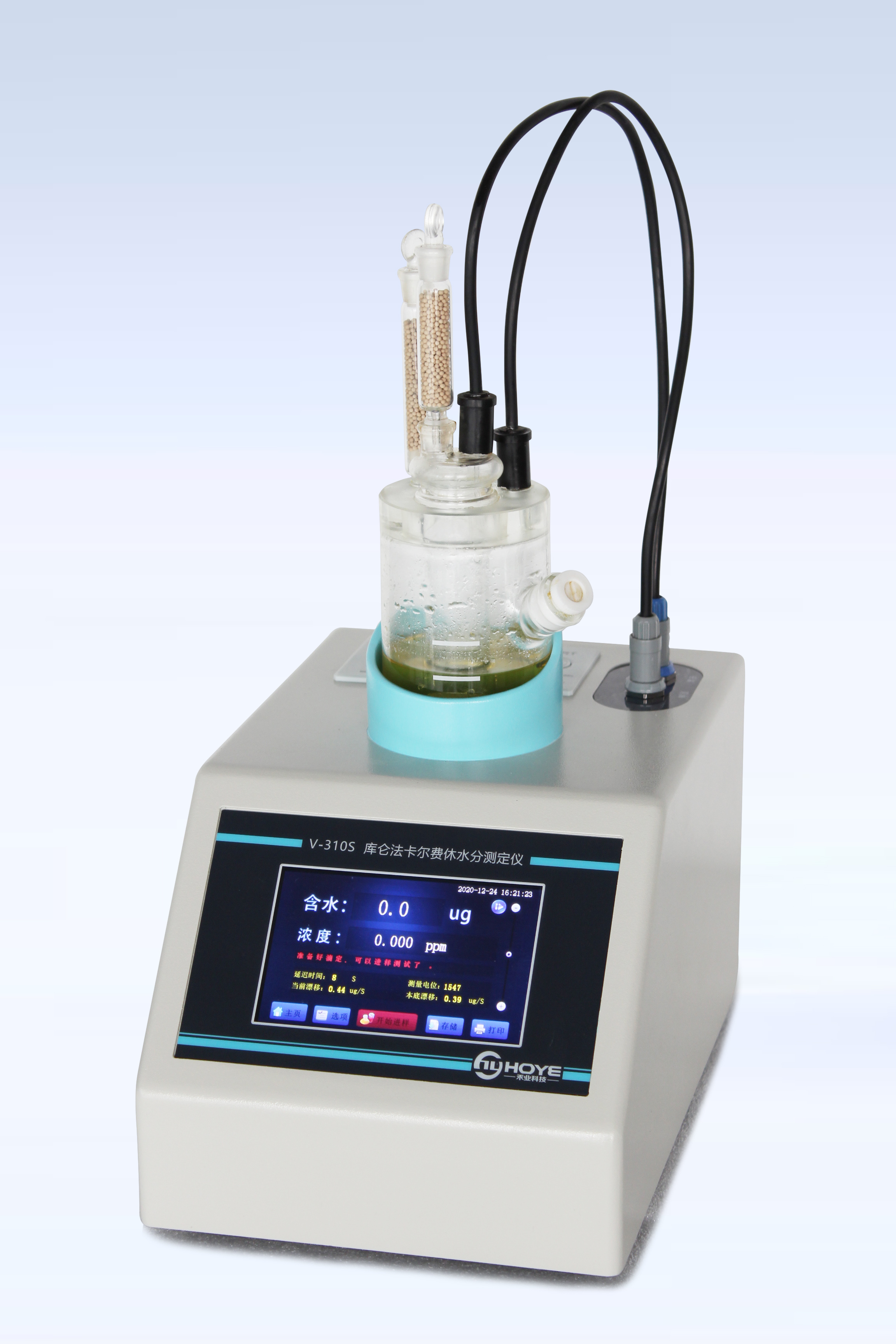 同时在线显示水含量、 测定时间、 PPM、 百分含量、 电解电流 、电位、 系统时间,实验过程一目了然可以及时发现问题;
